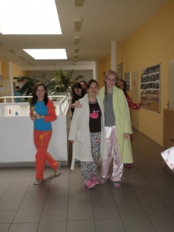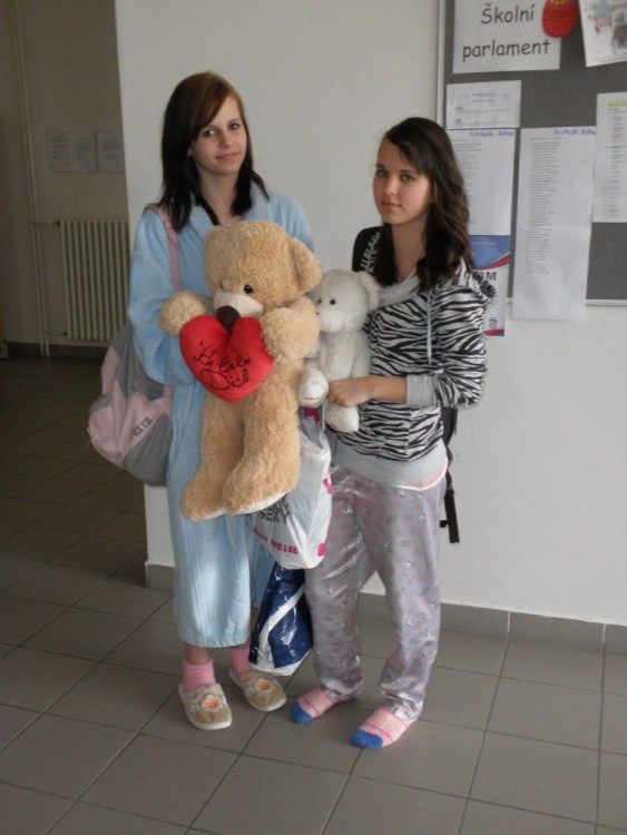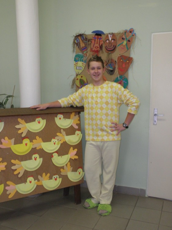 Apríl jsme začali zvesela, i když nás v tomto měsíci čekají zkoušky na střední školy. Nebo právě proto, veselá mysl je půl zdraví, jak říká jedno přísloví. A recese a humor jsou nám vlastní, proto jsme se všichni velmi dobře bavili. Zvlášť vydařené pyžámko měl Ondra Zítka a Tomáš Le, děvčata byla cudně zahalena ve slušivých župáncích. Uvolněný oděv navozoval uvolněnou a milou náladu. Do konce školního roku nám zbývají jen tři měsíce, jen tři měsíce budeme spolu v této škole. Proto si to chceme pořádně užít. Veselý april Vám přejí všichni z IX. třídy.