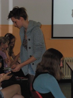 Proto jsme v rámci projektu Den Evropy pozvali do školy čtyři dobrovolníky, kteří pracují v Ivančicích na různých úkolech, aby nás seznámili se svou dobrovolnickou činností a se svou zemí. Přijela Anne Sophie Aichriedler z Rakouska, Justīne Zurkova z Lotyšska, Nadiya Malovichko z Ukrajiny a Oğuzhan Gürsoy z Turecka. Všichni nám velmi precizní angličtinou prezentovali zemi, odkud pochází i sami sebe, co dělají, proč se zúčastnili EDS, v kolika zemích již byli apod.