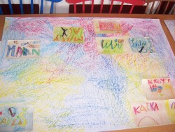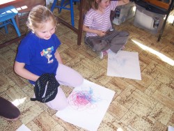 Děti si užily kreslení poslepu, výtvarného ztvárnění svého jména, malování hlínou, ...