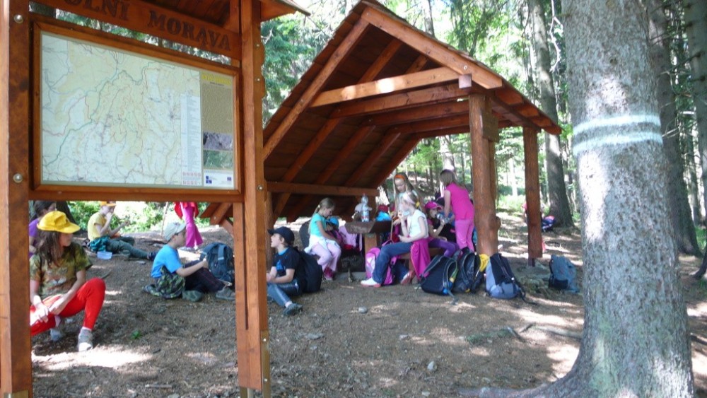 Ráno jsme se učili a odpoledne chodili na výlety. Třeba jsme stavěli domečky pro skřítky. To mě bavilo nejvic. Táke jsme šplhali na provaze. Každý večer nám paní učitelka četla pohádky.