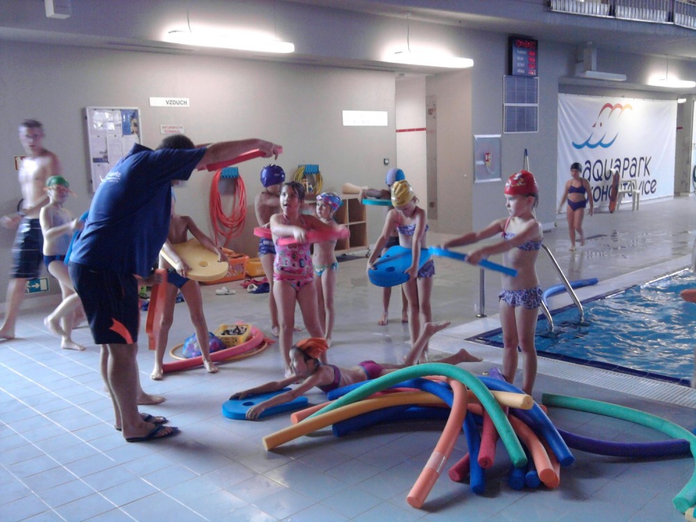 Naši druháčci mají za sebou první lekci plavání v bazénu v Kohoutovicích. Trenéři si děti rozdělili podle jejich schopností do 3 skupinek. Dvě byly v nízkém bazénu a ta třetí ve velkém. Děti řádily ve vodě s barevnými pomůckami, skákaly, houpaly se, hrály si. Výuka probíhala velice zábavnou a hravou formou a děti vypadaly nadšeně.