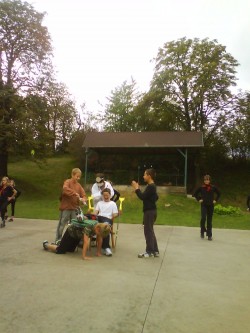 V sobotu 22.září v odpoledních hodinách jsme se zúčastnili Kaštánkového veselí, které se konalo v areálu Pod Kaštany. Tuto akci organizovalo SRPŠ, které nabídlo dětem bohatý program.Měli jsme možnost soutěžit, skákat ve skákacím hradu a sledovat kulturní program, ve kterém vystupovali žáci naší školy a také ZUŠ. My jsme se zapojili do kulturního programu vystoupením Polámal se mraveneček, ze kterého zde jsou fotografie,dokazující, jak jsme se bavili a jaká zde byla atmosféra. Škoda jen, že si s námi zahrávalo počasí, které se ke konci pokazilo a spustil se déšť.