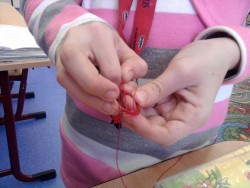 Prstýnky z drátků omotáváme provázky z umělé hmoty. Je to složité, ale prstýnky vypadají skvěle:)