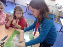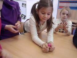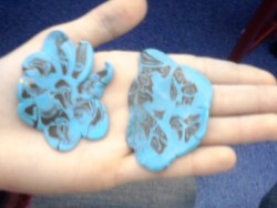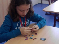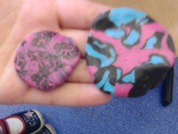 Dnes jsme v kroužku vyráběli přívěsky na krk z FIMO hmoty různých barev. Hmotu jsme nejdříve řádně zpracovali, pak vyváleli, nakrájeli, tvarovali a zase vyváleli. Nakonec se vše upeklo v troubě a přivázalo na šňůrečky. Výsledek je dokonalý:)))