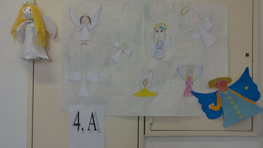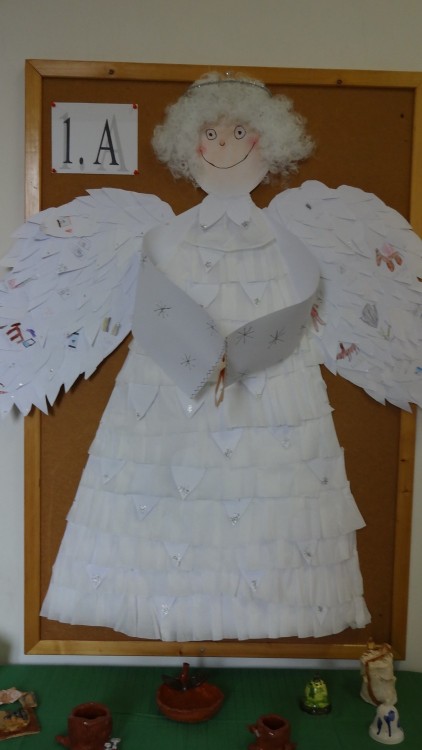 Dnes proběhla na škole soutěž o nejkrásnějšího anděla...Všechny třídy prvního stupně se zapojily a vytvářely anděly různými výtvarnými technikami. Hlasování se potom zúčastnili všichni, kdo přišli na výstavu keramiky. Nejvíce hlasů nakonec získal anděl dětí z 1. A, které odmění SRPŠ. Gratulujeme vítězům, ale i ostatním k pěkné práci, která bude zdobit naši školu po čas celého adventu.