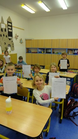 Prvňáčci zvládli s přehledem polovinu první třídy, což znamená, že dostali své první vysvědčení...