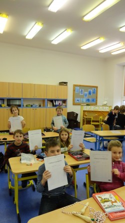 Ve třídě jsme zároveň vyhodnotili soutěž, ve které se děti získávaly v průběhu roku razítka za aktivitu, rychlost a správnost práce v jednotlivých hodinách nebo také za příkladné chování a pomoc druhým. Za to si mohly vybrat z připravených cen...