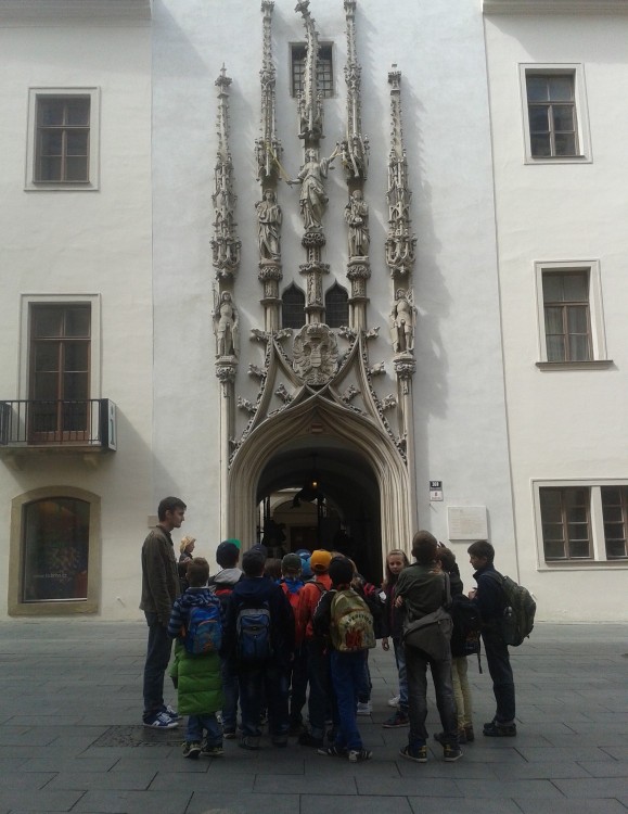 Vycházka středem města seznámila žáky se zajímavými stavbami a pověstmi, které se k nim vztahují. Městem nás provedl Petr Kurečka. Viděli jsme Kapucíny, Moravské muzeum, Zelný trh a náměstí Svobody. Petr dětem ke každé památce řekl zajímavosti a někdy i pověst.