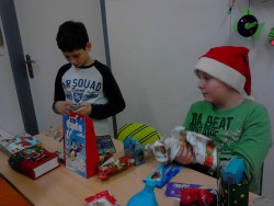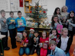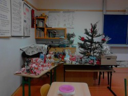 Konečně nastal den, na který jsme se všichni velmi těšili - vánoční besídka s rozdáváním dárků. Asi jsme byli hodní, když se jich tolik sešlo pod vánočním stromečkem. O tom svědčí následující fotografie. Je vidět, jak se nám rozsvítily oči a jak jsme si užívali vánoční atmosféru společně s naší třídní paní učitelkou Miroslavou Grombiříkovou, která nás doprovázela při zpívání vánočních koled.