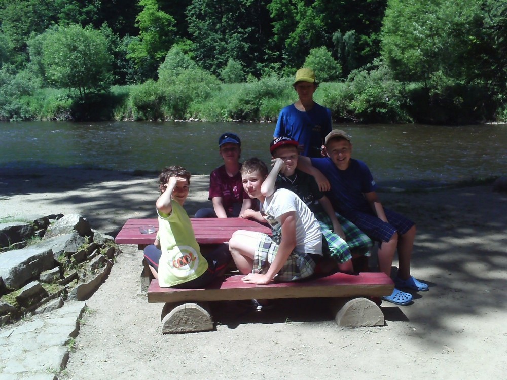 Vyšlo nám počasí. Na vodě byla sranda. Kluci za šestky všechny kropili a potápěli. V Krumlově jsme měli rozchod a šli jsme na pizzu. Večer jsme v kempu zapalovali oheň. Pán vedle ve stanu příšerně chrápal přes celý kemp a nemohl jsem usnout. Petr Schäffer