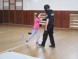 Hodiny tělesné výchovy dívek ve čtvrtek 15,5. byly jiné než obvykle. Xažily ukázkovou lekci sebeobrany, kterou pro ně připravili příslušníci Městské policie Modřice. Dívky si vyskoušely v praxi obranu proti útoku nožem, pistolí, různé druhy držení. Samozřejmě si při tom užily i hodně legrace.