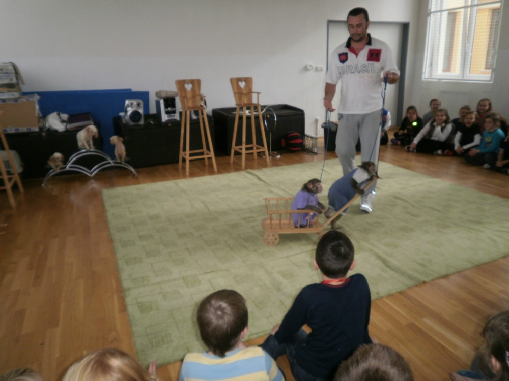 23. 10. 2013 Dnes děti v družině zažily vystoupení cvičených opiček a pejsků. Mohly si také pohladit živého hada. Dětem se dnešní zážitek velmi líbil. B. Špačková 23 / 10 / 2013 JKa