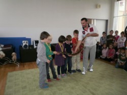 Dnes děti v družině zažily vystoupení cvičených opiček a pejsků. Mohly si také pohladit živého hada. Dětem se dnešní zážitek velmi líbil.