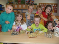 26. 5. 2015 Dokončení květnových výrobků - keramický šnek zdobený glazurou a burelem -stojan na tužky - glazovaní ptáčků z keramické hlíny - zdobená textilní taška, zažehlení 26 / 5 / 2015 KV