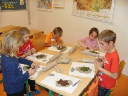 31. 10. 2014 - práce s keramickou hlínou - otisky přírodnin - odpočinek s pohádkou - krmítka - stavebnice SEVA - naše nástěnky - věnečky na Dušičky 31 / 10 / 2014 KV