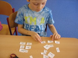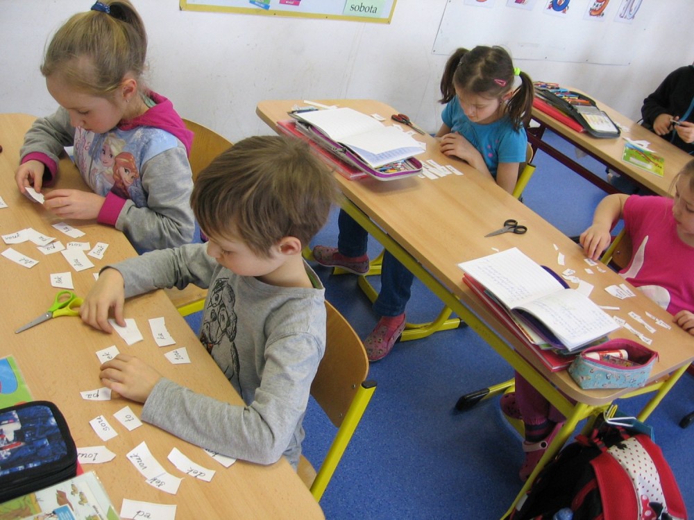 11. 2. 2016 Už umíme spoustu písmenek, přečteme si daleko víc věcí. Písmenka, která jsme ještě neprobrali, už alespoň tiskací docela poznáme. Tento týden se učíme dvojhlásky au, ou a eu. Hrajeme si se slovy, stříháme, skládáme, lepíme, píšeme... 11 / 2 / 2016 SMa