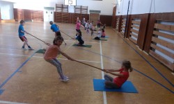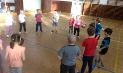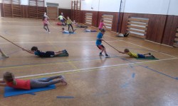 Malá ukázka z hodiny TV. Po honičkách na zahřátí následuje rozcvička, dále se proměníme v mořeplavce a překonáváme divoké vlny na bárce. Zahrajeme si i Škatule, škatule, hejbejte se a na závěr hodiny se zklidníme v kruhu, když jeskyňky honí Smolíčka pacholíčka. A nejvíc nás asi baví závěrečné rozloučení :-)...