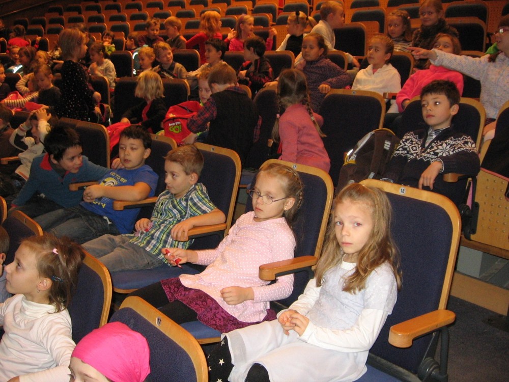 V pátek jsme zhlédli divadelní představení na motivy knihy Jana Karafiáta - Broučci. Viděli jsme velmi pěkný příběh ze života rodiny broučků uprostřed přírody. Broučka s Beruškou jsme mohli pozorovat od mládí až do dospělosti, ve všech ročních obdobích. V rolích se vystřídali herci i loutky, někdy byli dokonce malí diváci vtáhnuti do děje. Představení i samotné divadlo Radost se nám moc líbilo.