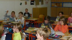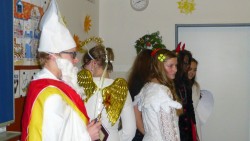 V pátek 4.12. přišel do naší třídy Mikuláš v doprovodu své družiny andělů a čertů,aby zjistil, jestli jsme byli hodní. Protože všichni buď hodní byli, a ti co přece jenom někdy zlobí slíbili, že se polepší, dostali jsme od Mikuláše pěknou nadílku.Čertíky jsme si také namalovali a moc se nám povedli.