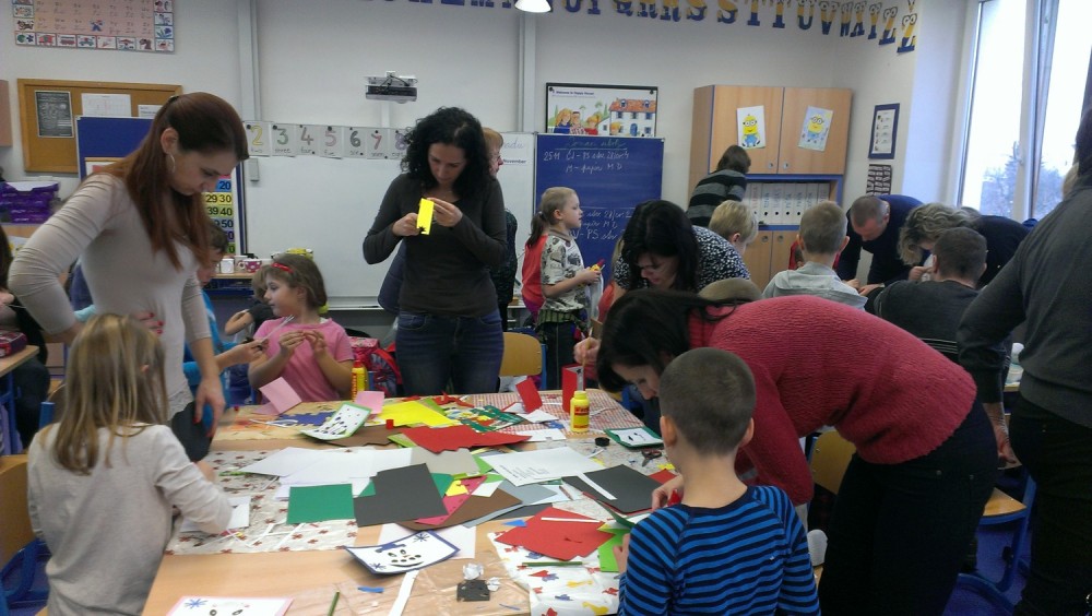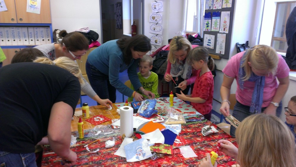 Ve středu 25.11. jsme do naší třídy pozvali všechny rodiče. Tento den byl věnován právě jim a jejich dětem. Společně s dětmi jsme ráno připravily pět vánočních dílniček. Děti i rodiče se seznámili s různými výtvarnými technikami a netradičními materiály. Po celém dopoledním tvoření si rodiče domů odnesli nádherné výtvory - sněhukáka z ponožky, vánoční stromek jako dekoraci, vánoční obrázek z knoflíků, špachtlový obraz z ubrousku a vánoční 3D přání. Vánoční atmosféru jsme si přiblížili pitím teplého čaje a jezením cukroví. Bylo to krásné dopoledne a chtěla bych poděkovat všem rodičům, kteří přišli a věnovali svůj čas dětem. Již nyní se těším na další společně zážitky!