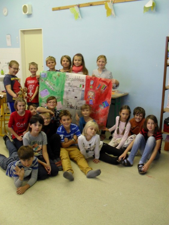 Na počátku výuky jsme si připomněli zeměpisné údaje Itálie, na mapě ukázali, kde stát leží a jak vypadá. Dále jsme si vyhledali informace o italském školství a srovnali, jak je to u nás a v Itálii. Dozvěděli jsme se, že italským dětem začíná výuka od deváté hodiny, že mají desetistupňovou známkovací stupnici a co můžeme závidět, tak i tříměsíční prázdniny!