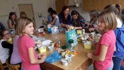 Již tradičně se na škole v Modřicích konají vánoční dílny za aktivní účasti rodičů. Pro učitele je to náročný den na organizaci, a tak jsem byla velmi ráda, když někteří rodiče ze V.B měli možnost se dílen účastnit a svým zapojením pomoci. Žáci si nejprve přečetli návod na sladkou „mňamku „. Poté se rozdělili na dvě skupinky. Jedna zůstala ve třídě vyrábět vánoční výrobky, druhá se odebrala do školní kuchyňky. Poděkování patří rodičům za přístup, protože všichni žáci si donesli na výrobu dobroty všechny potřebné ingredience. Do sklenice opatřené mašlí děti naskládaly vrstvy piškotů, bílé hmoty z jogurtu či smetany a ovoce. Zbytky si snědly na svačinku. Ve třídě se učily zabalit vánočním papírem válec, který se může následně využít k dárku. Víčko opatřily šiškami. Děti ještě stihly vyrobit z hlíny ryby, rybičky a hvězdy. Vánoční dílny se také využily k dokončení vánočních stromů. Ty budou dokreslovat atmosféru koledy, kterou děti budou zpívat jako závěrečné číslo na vánočním jarmarku.