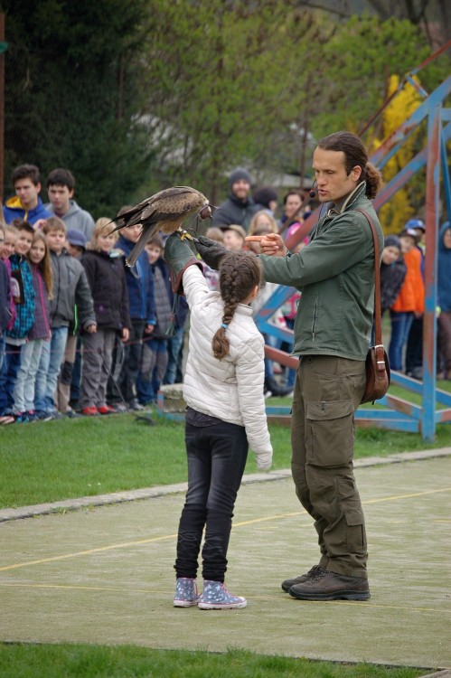 V pondělí 11.dubna přijeli do naší školy sokolníci ze společnosti Zayferus, kteří mnoho času věnují ochraně dravých ptáků a práci s nimi a předvedli všem žákům základní i mateřské školy ukázky práce s dravými ptáky. Nebyli u nás poprvé a jako vždy byl program vynikající.