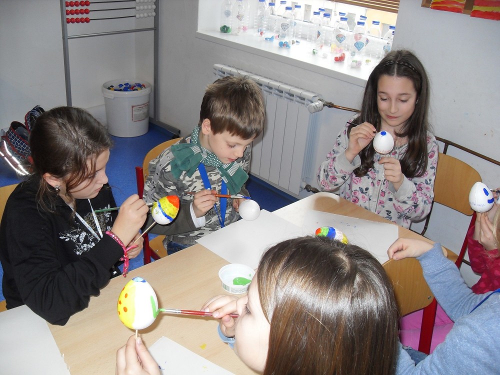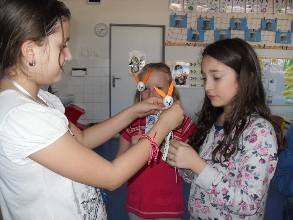24. 3. 2016 Velikonoční tvoření - keramické stojánky na ubrousky, závěs jarní motiv - ovečky na louce - sádrové odlitky vajíček, kuřátek, zajíčků - hlavičky zajíčků - zdobení vajíček 24 / 3 / 2016 KV