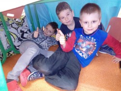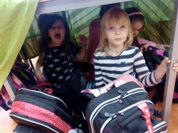 V únoru jsme si udělali skrýše z lavic a přehozů,