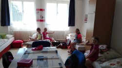 Už od ranního budíčku jsme byli ve výborné náladě a vybíhali ven, vstříc novým zážitkům. Každý den byl tematicky zaměřen, takže není divu, že jeden den z nás mohli být Mimoni a už druhý den jsme hopkali po areálu jako Šmoulové. Po večeři jsme vybíhali buď na fotbal či vybíjenou na hřiště, nebo jsme koukali na pohádku. Večer nás pak paní učitelky uložily, popřály nám dobrou noc, zahnaly zlé bubáky, zkontrolovaly, zda nás hlídají naši plyšáci a nechaly pootevřené dvěře mnohých pokojů.