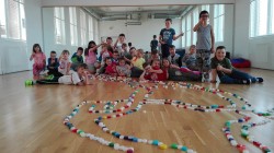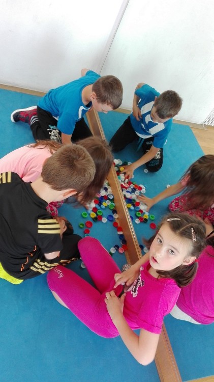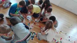 V rámci tělesné výchovy jsme společně s dětmi vyzkoušeli, co obnáší psychomotorická hra. Cílem této hodiny s prvky psychomotoriky bylo vžít se do pocitů ostatních dětí, chápat jejich potřeby, respektovat je a co možná nejvíce mezi sebou komunikovat, spolupracovat a pomáhat si. Hodinu jsme zakončili postavením společné silnice, kdy každý začal svým kouskem a musel se někde napojit na silnici spolužáků.