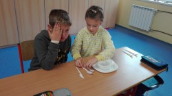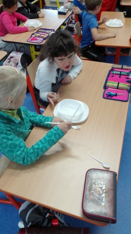 V pátek na nás čekal velký zážitek. Hned ráno totiž naši třídu navštívil Ufon ze SVČ Ivančice. V rámci vzdělávacího programu Ufon na návštěvě, zaměřeného na etiketu a základy slušného chování, jsme si povídali i na vlastní kůži zkoušeli a nacvičovali vhodné chování v běžném životě, ale i při méně obvyklých situacích.