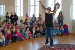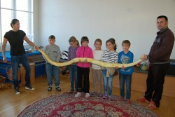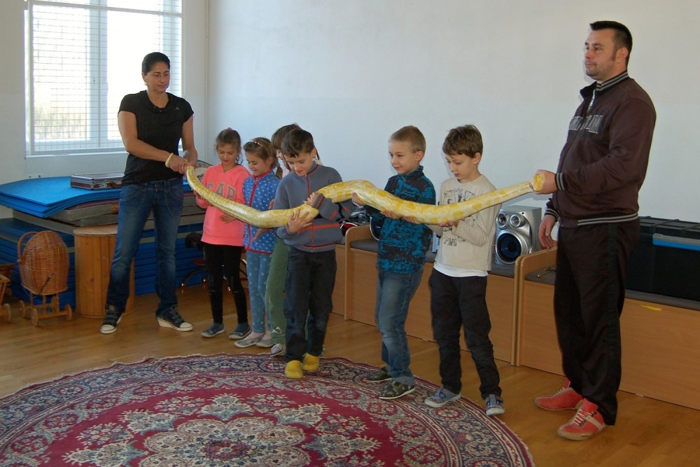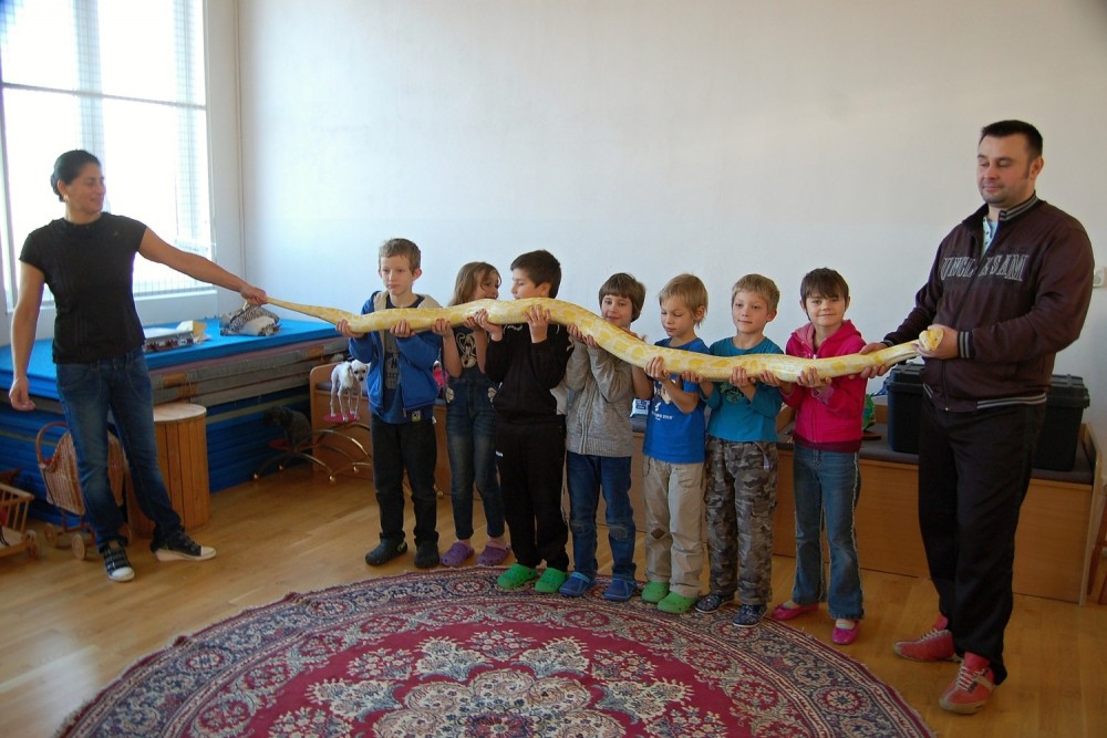 Dnes jsme se do školy moc těšili, čekalo nás vystoupení Dua Eden.Rodiče našeho spolužáka Enriqua nám předvedli velice hezké představení.Kdo by nebyl zvědavý na cvičené opičky a pudlíky? Z hadů jsme samozřejmě měli respekt, ale nakonec jsme se s jedním z nich i vyfotili.Přesvědčili jsme se, že hadí kůže není vůbec slizká a nikdo se nebál.