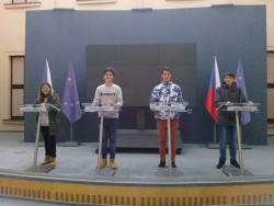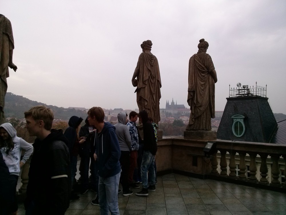 Občerstveni tímto nevšedním zážitkem jsme poté sestupovali po kamenném dláždění dolů, do probouzejícího se města. A když se po Malé Straně rozezněla loretánská zvonkohra, čekala jsem, kdy z domu U Dvou slunců vyběhne malý Jan Neruda, nebo se alespoň objeví postavy jeho povídek. Nic takového se samozřejmě nestalo, město žilo svým tempem, lidé pospíchali do práce a kavárny čekaly na své první hosty. My jsme směřovali k Valdštejnskému paláci. Opět jsme žasli, tentokrát nad bohatstvím a okázalostí budovy i sálů, jimiž jsme procházeli. Nakonec jsme zasedli do kdysi velkolepé konírny, dnes jednací síně Senátu ČR. Poté jsme se přemístili do nedaleké Strakovy akademie, sídla vlády. Tato svěží, o dvě stě let mladší novorenesanční budova na nás zapůsobila milým dojmem, zvláště když jsme v tiskovém centru postáli před řečnickými pultíky našich vládních představitelů, či když jsme usedli přímo na jejich místa v zasedacím sále.