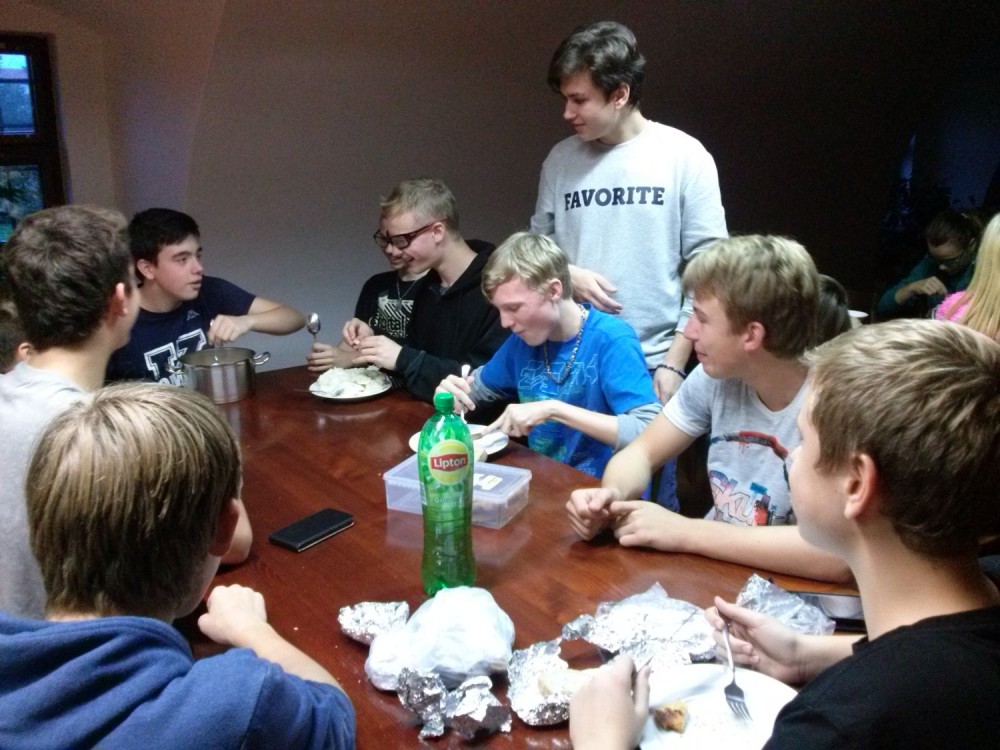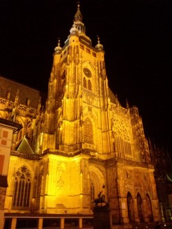 Protože se na nás začaly projevovat první stopy únavy a také rozdrásané paty v nevychozené obuvi přestávaly náš pochod činit radostným, zamířili jsme hbitým krokem na Hradčanské náměstí, kde jsme v kapucínském klášteře našli náš přechodný domov. Na jedné straně se nám nabízelo velmi jednoduché, prosté ubytování, na druhé straně skýtal pobyt v těchto prostorách neopakovatelný zážitek. Než jsme se zabydleli, ošetřili raněné a dostatečně se nasytili, venku se již zešeřilo a na další pochůzky jsme vyráželi již téměř za tmy. Ovšem bludiště a zejména Petřínská rozhledna zářily dodaleka. Téměř všichni si cvičně vyběhli až na její vrcholek, takže bylo jasné, že sil máme dost a že můžeme pokračovat do již turisty opuštěného a ztichlého areálu Pražského hradu. Nasvícený chrám sv. Víta působil impozantně, byl to mimořádný zážitek.