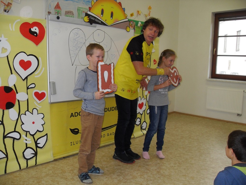 Dnes školní družina navštívila knihovnu. Čekal nás ilustrátor Adolf Dudek s pohádkovým programem. Asistenty u pohádek byla paní vychovatelka i žáci. Program byl moc pěkný. Pan Dudek se rozloučil autogramiádou.Těšíme se na další návštěvu pana ilustrátora.