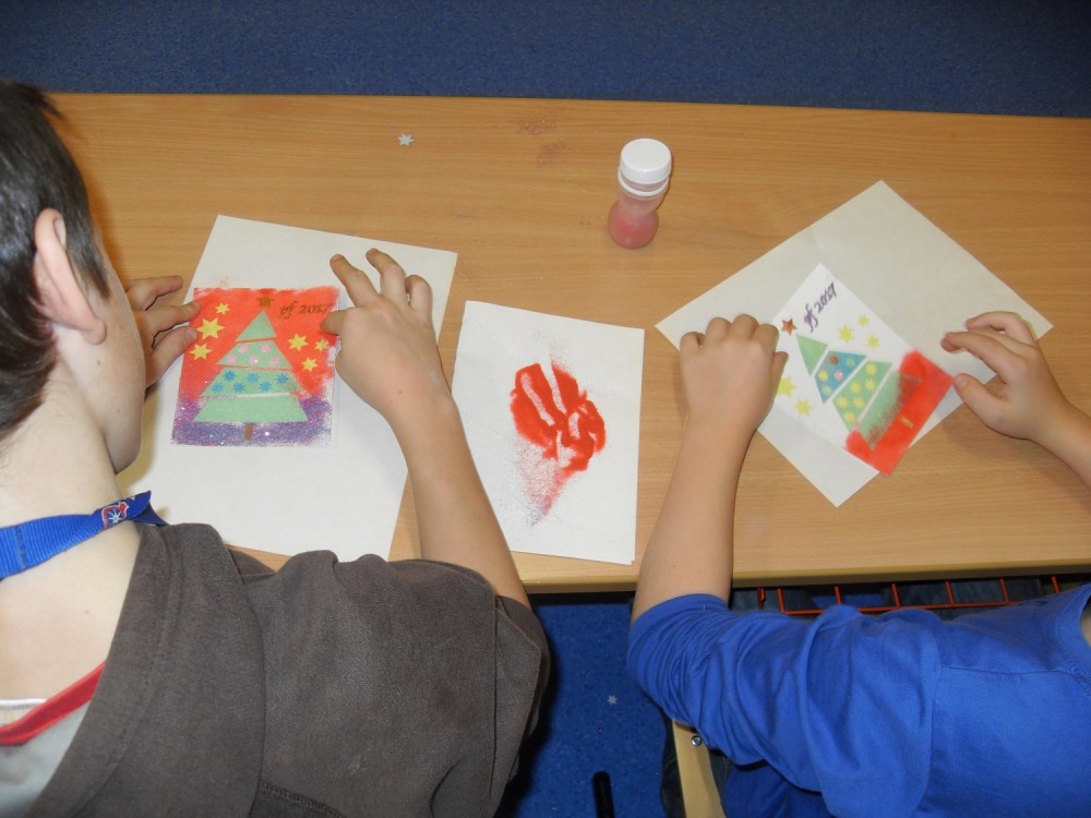 - vánoční přání vysypávané pískem