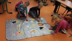 Ve 4. oddělení zdobíme pohádkový plášť, který nosí babičky na čtení pohádek, v rámci projektu "Babička a dědeček do školní družiny".