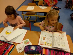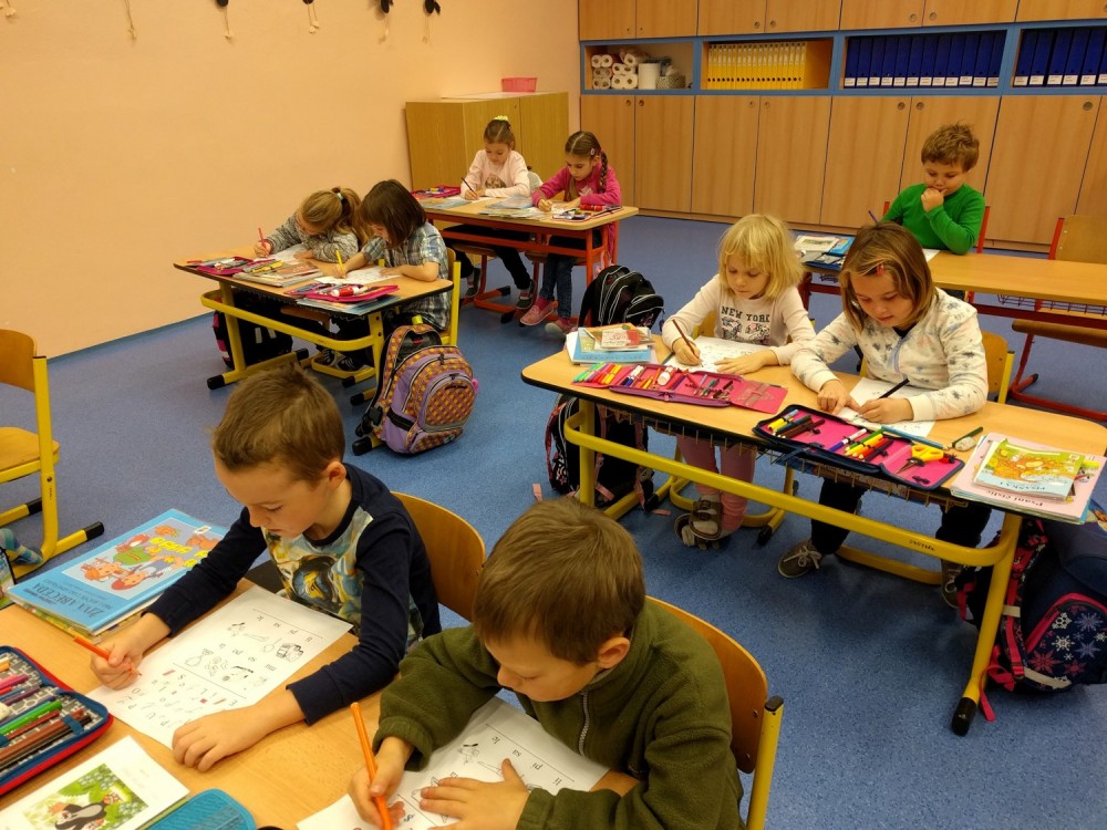 Nejdřív jsme si museli vysloužit pět klíčů, které nám otevřely dveře k ukrytým Slabikářům.Každý klíč jsme získali za jeden splněný úkol.Přiřazovali jsme tiskací tvar písmenka k psacímu,hledali správnou slabiku k obrázku, bez chyby přečetli řadu slabik, dokázali napsat diktovanou slabiku. Protože jsme šikovní, všichni jsme úkoly splnili a Slabikáře jsou naše!