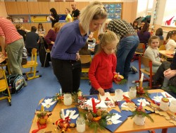 Příjemná vánoční nálada provoněná hřebíčkem a jehličím provázela naše vánoční tvoření. Spolu s maminkami, tatínky i babičkami a dědečky jsme si vyrobili voňavý svícen z jablíčka, vánoční přání s andělíčkem, zápich sobíka, kokosového sněhuláka a nechyběl ani čertík.