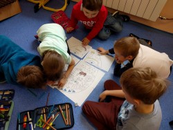 Na Velikonoce jsme se připravovali ve výtvarné výchově a pracovních činnostech, kde jsme kromě malovaných vajíček také vyrobili velikonočního beránka a kropenatou slepičku. Dnes téma Velikonoc prolínalo celou výukou. Četli jsme, psali, vyplňovali pracovní listy v českém jazyce i řešili velikonoční úkoly v matematice. Nakonec jsme si společně ve skupinkách vytvořili velkou kraslici a popřáli si, aby Velikonoce byly opravdu veselé.