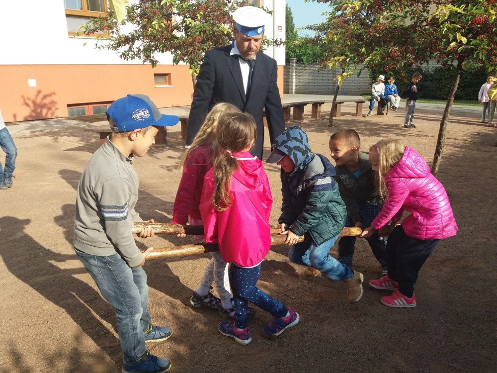Dnes k nám připlul kapitán Libor na lodi jménem Potápka. Z nás se stali námořníci. Abychom se mohli plavit s kapitánem, museli jsme zvládnout šest složitých zkoušek. Zkoušky prověřovaly naši sílu, odvahu, paměť, schopnost balancovat, spolupráci, rychlost a vytrvalost. Zkoušky jsme zvládli a z nás se stali opravdoví námořníci.