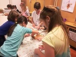 V pondělí jsme se vydali do centra volnočasových aktivit pro děti i dospělé v Brně - Bystrci. Tady už na nás čekal výukový program Velikonoce pod vedením zkušených a milých lektorů. Strávili jsme tu bezmála tři hodiny, během kterých jsme měli možnost vyzkoušet si mnoho zajímavých činností. Děti si s lektory povídaly o Velikonocích a s nimi spojených tradicích, chlapci si upletli pomlázku, děvčata ozdobný věneček, všichni společně jsme pekli velikonoční perníčky a zdobili jsme vajíčka textilními ozdobami.