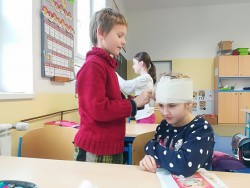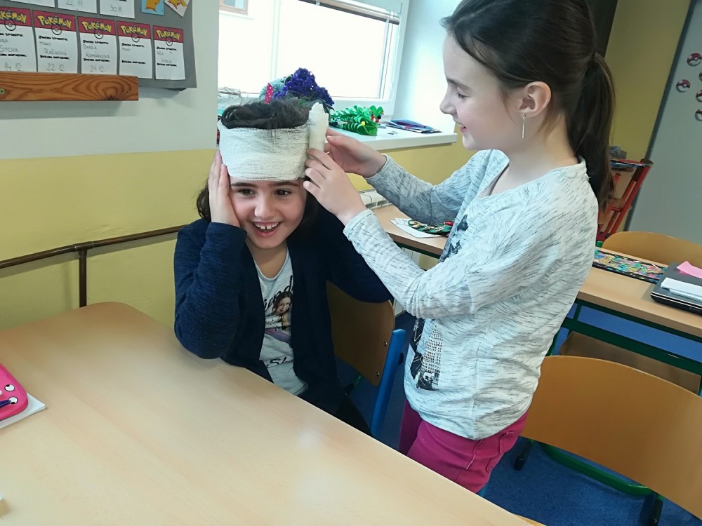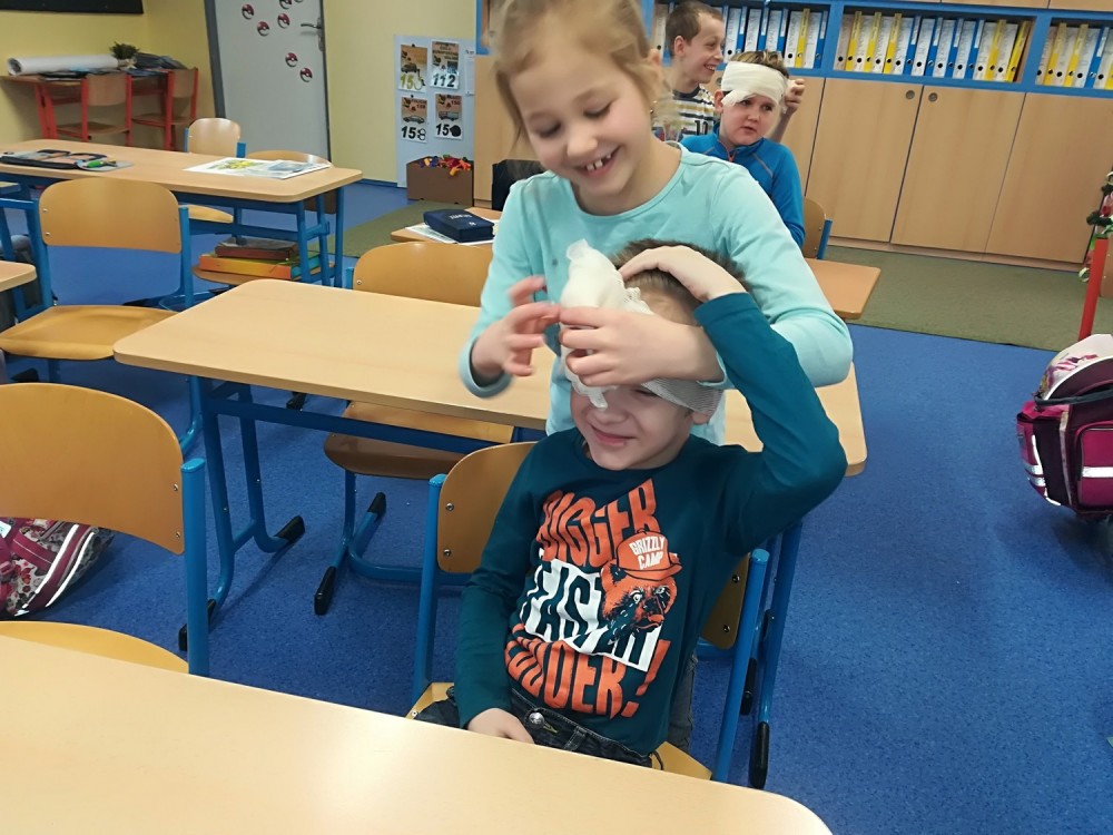 Tento výukový program zavedl děti do příběhů a situací, ve kterých se mohou svým i cizím zaviněním ocitnout každý den, např. úrazy, šikana, fyzické napadení aj. Děti se za dvě vyučovací hodiny seznámily s možnostmi a pravidly pomoci dětem, dospělým i zvířatům. Vysvětlili jsme si pravidla první pomoci a děti si samy vyzkoušely stabilizovanou polohu. Zkoušely také pracovat s obvazy, trojcípým šátkem a simulovaly telefonní hovor na záchrannou službu.