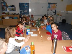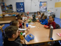 Poslední den před vánočními prázdninami jsme s paní asistentkou přichystali krásné překvapení pro paní učitelku.Připravili jsme vánoční posezení se svíčkami a když paní učitelka přišla, zazpívali jsme koledu "Štědrý večer nastal". V klidné a moc hezké atmosféře pak pokračovala celá besídka.Ochutnali jsme cukroví, které nám připravily maminky a babičky a rozdali si i drobné dárky.