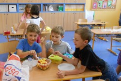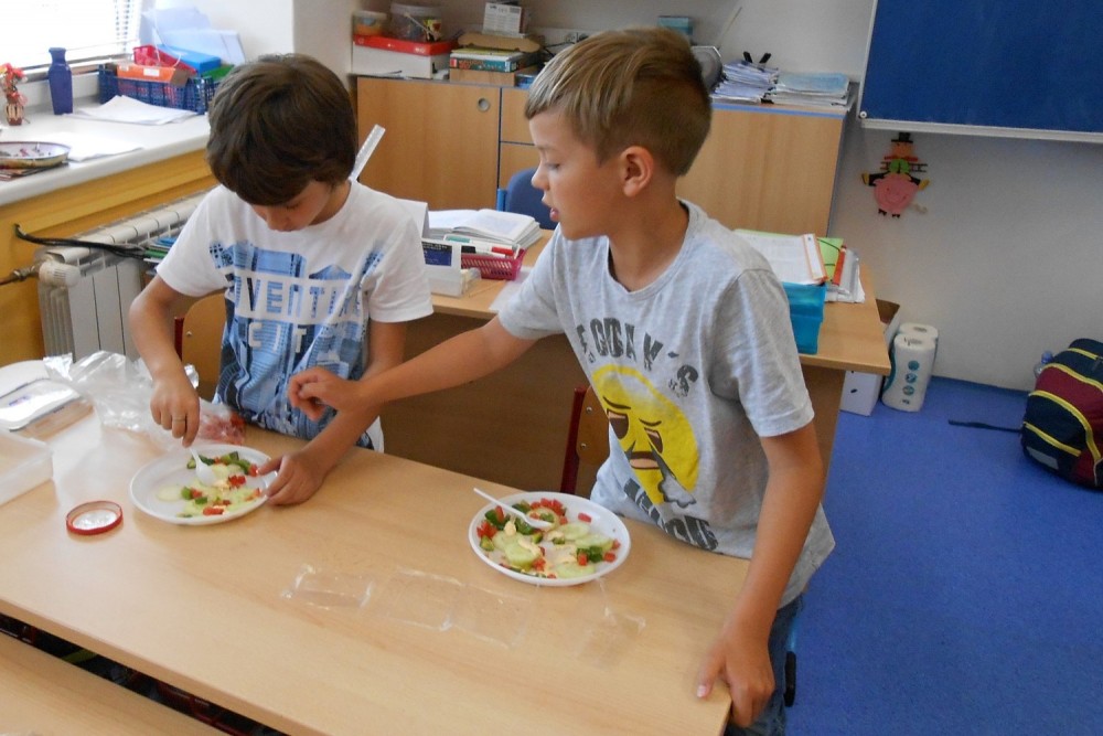 25. 5. 2018 Protože se v Prvouce učíme jak zdravě jíst, takovou zdravou svačinku jsme si dnes připravili.Zeleninové a ovocné saláty se moc povedly a všem velice chutnaly. 25 / 5 / 2018 JS