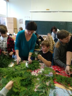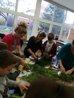 V úterý 28.listopadu jsme se sešli ve třídě ke společnému vánočnímu tvoření. Přišli mezi nás i naši rodiče, maminky a jeden tatínek, se kterými jsme se pustili do práce.Vyráběli jsme adventní věnce. Vánoční atmosféru nám zpříjemnily i vánoční koledy a vůně jehličí, kterým jsme pomocí drátku obalovali korpusy věnců. Tato činnost byla asi nejnáročnějším krokem, se kterým jsme někteří potřebovali vydatnou pomoc rodičů a paní učitelky. Zdobení už záleželo na naší fantazii.A jak se nám to povedlo? O tom svědčí následující fotografie. Za pomoc a příjemně strávené chvíle moc našim rodičům děkujeme.