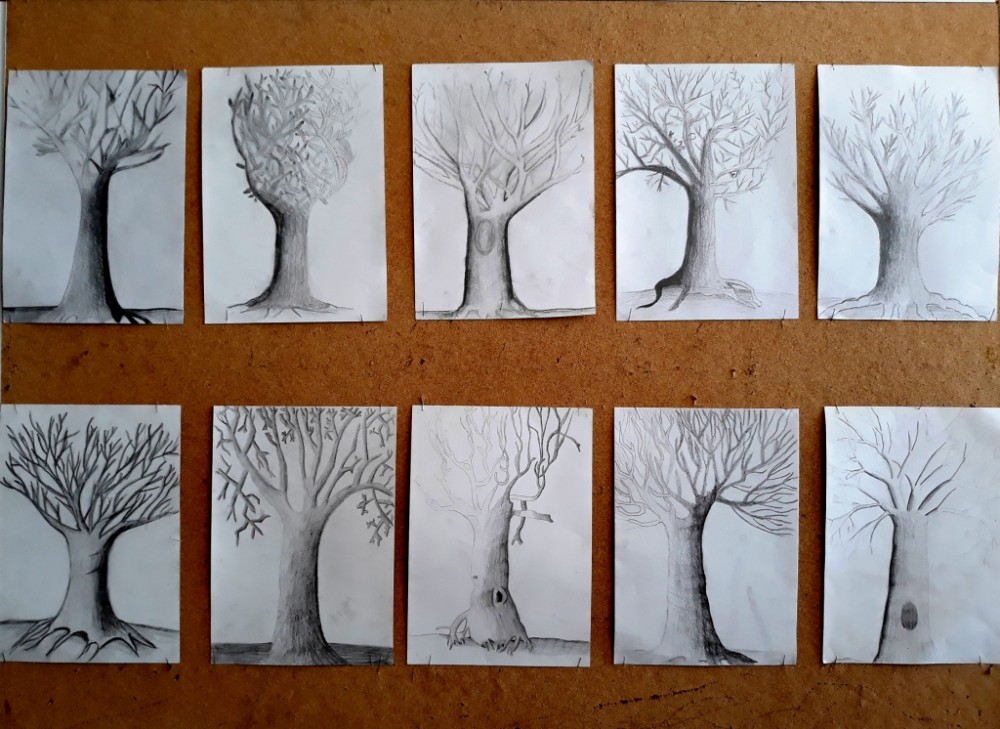 Stínovaná kresba stromů