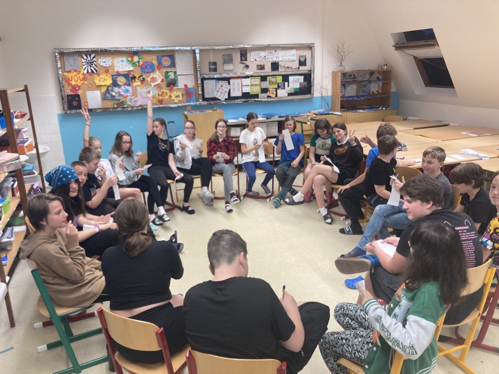 Na samém konci května si šesťáci udělali tzv. nejlevnější školní výlet na světě - přespání ve škole. Sice nám počasí nepřálo tak, jak by bylo ideální a venkovních aktivit jsme se nedočkali (protože si nikdo nevzal holinky :), i tak jsme se ale rozhodně nenudili.