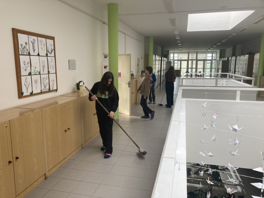 I když si žáci nevybrali úplně jednoduché pokrmy a příprava zabrala spoustu času, stihli jsme i jiné aktivity. Připravili jsme společně plochu pro fotokoutek na zahradní slavnost, což si vzala na starost talentovaná Terka W., společně jsme se pobavili několika hrami alespoň ve třídě, když už to venku nešlo a vše jsme korunovali populární schovávačkou v lehce potemnělé budově školy, abychom si ji užili tak, jak ji běžně neznáme.